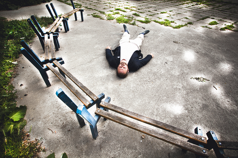 Medzi fotografiami v knihe ma zaujala fotka Ivana Ostrochovského, ktorý leží na zemi pri lavičkách v parku. Ako vznikla?